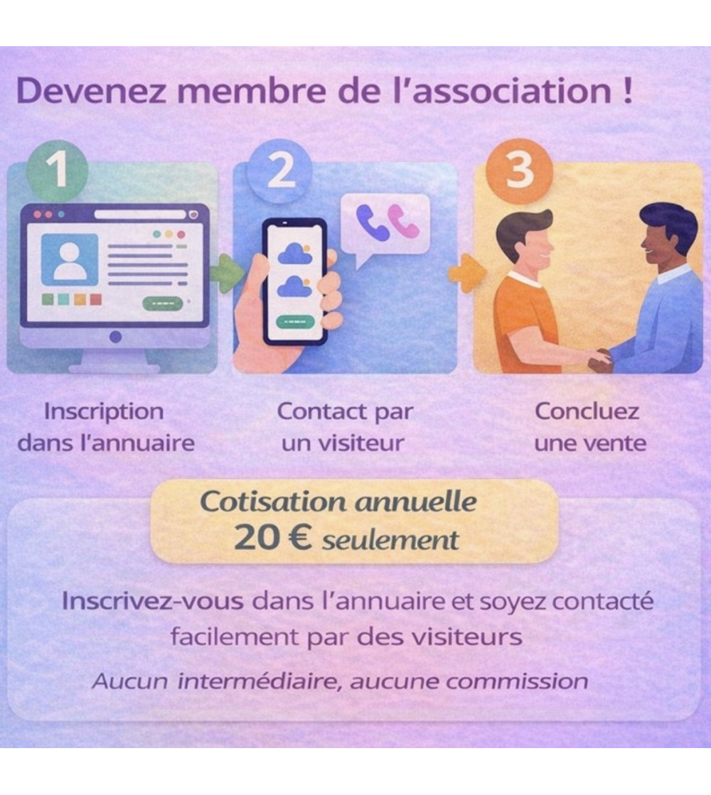 Tout membre à jour de sa cotisation annuelle de 20 € peut, s’il le souhaite, être référencé dans l’annuaire du site internet de l’association.