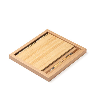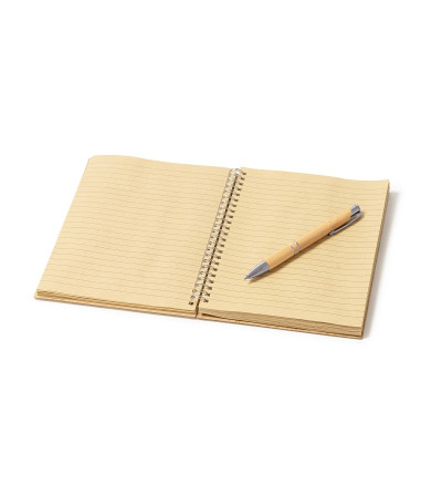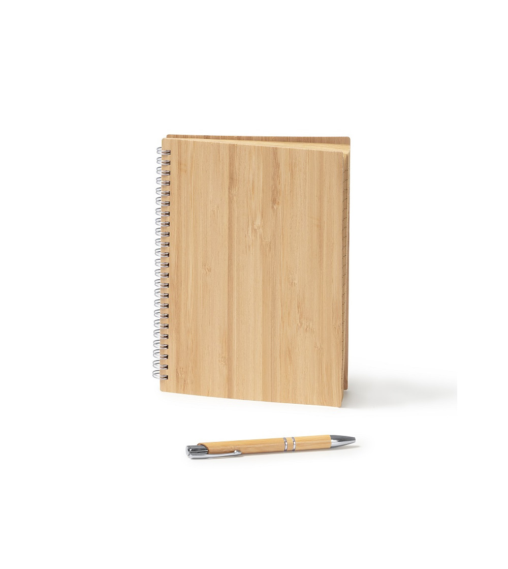 ensemble cahier A5 bambou, cahier et stylo personnalisable, set cahier bambou DTF UV, carnet personnalisable vinyle, cahier laser gravable, objet publicitaire écologique