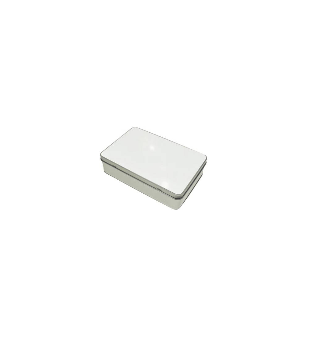 Boîte aluminium rectangulaire grise personnalisable par sublimation. Idéale pour logos, motifs ou prénoms. Parfaite pour packaging, cadeaux, objets promotionnels et créations artisanales.
