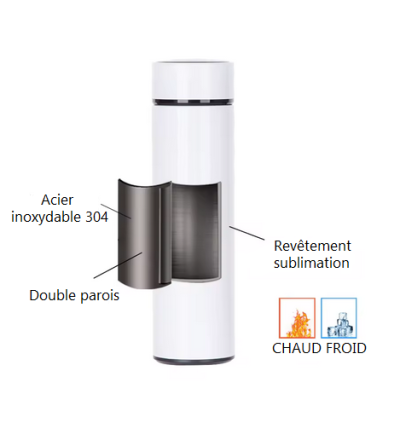 Thermos gourde 450 ml avec capteur de température – Personnalisable sublimation