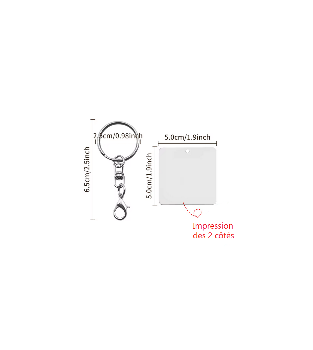 Porte-clés carré aluminium sublimation – Personnalisable HD