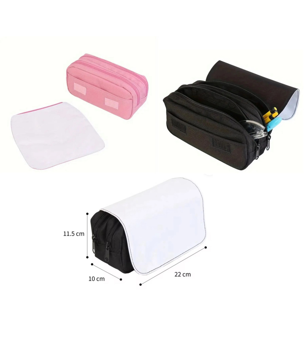 Trousse double compartiment idéale pour la sublimation. Pratique et personnalisable, parfaite pour ranger stylos, accessoires ou fournitures scolaires tout en laissant libre cours à votre créativité.