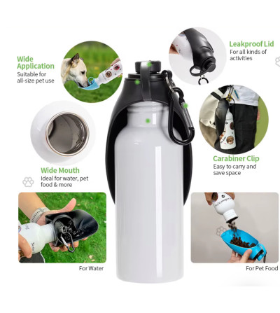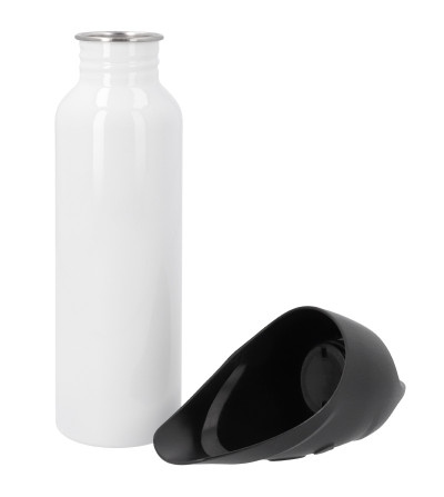 Gourde abreuvoir 750 ml pour animaux en aluminium, légère et étanche, avec surface blanche spéciale sublimation. Parfaite pour hydrater votre animal en balade et créer un design personnalisé.