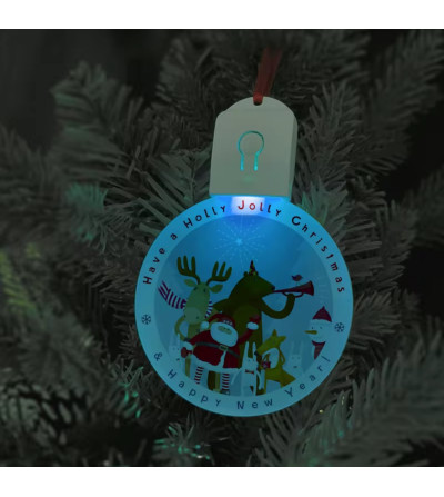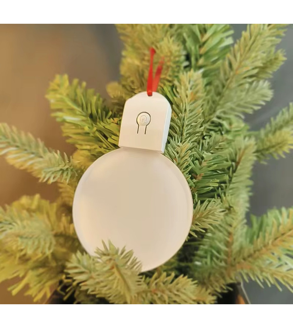 Boule LED de Noël à suspendre, personnalisable par sublimation. Illumine votre sapin avec un design unique grâce à sa lumière intégrée et sa surface sublimable haute définition. Idéale cadeaux personnalisés, décorations féeriques et créations artisanales.