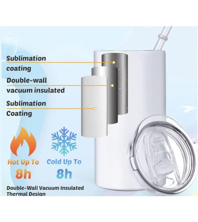 Découvrez le tumbler 12 oz / 350 ml sublimation, un gobelet isotherme polyvalent et entièrement personnalisable. Grâce à sa paroi blanche traitée pour la sublimation, vos designs ressortent avec une netteté exceptionnelle et des couleurs éclatantes.