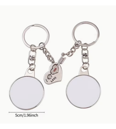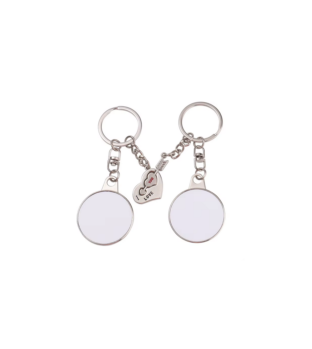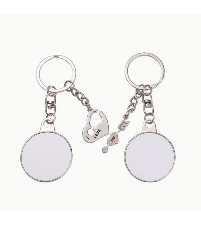 Découvrez le porte-clef duo Love en métal, un accessoire élégant et personnalisable grâce à sa surface blanche spécialement conçue pour la sublimation.