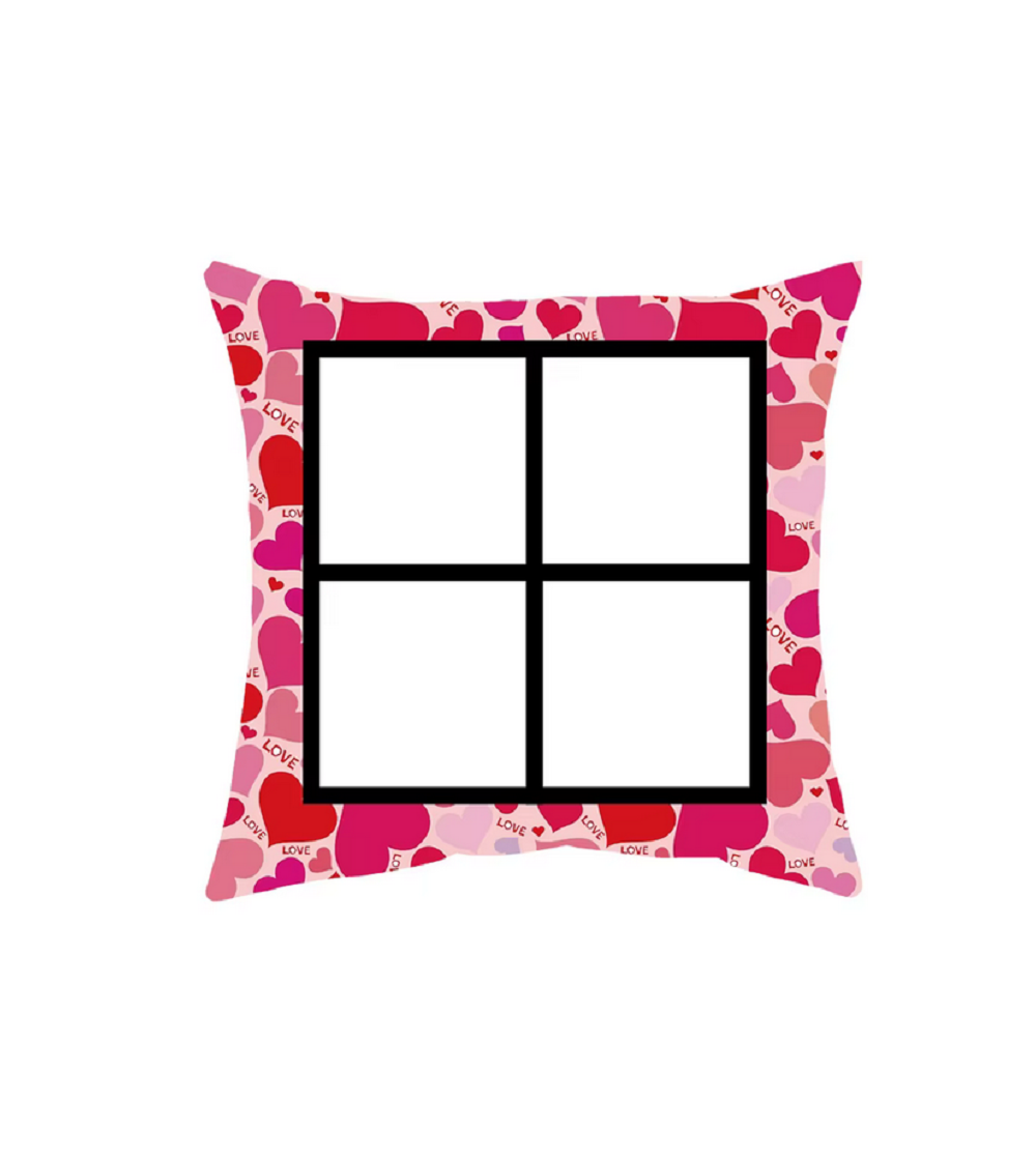 Craquez pour cette housse de coussin motifs cœurs avec 4 cases blanches, idéale pour décorer un salon, une chambre ou offrir un cadeau plein de tendresse comme la st valentin.