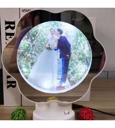Une fois la veilleuse allumée, le visuel personnalisé s’illumine et crée un effet magique, idéal pour une ambiance chaleureuse dans une chambre, un salon ou un bureau. Ce cadre est parfait pour les créateurs de cadeaux personnalisés et les professionnels de la sublimation.