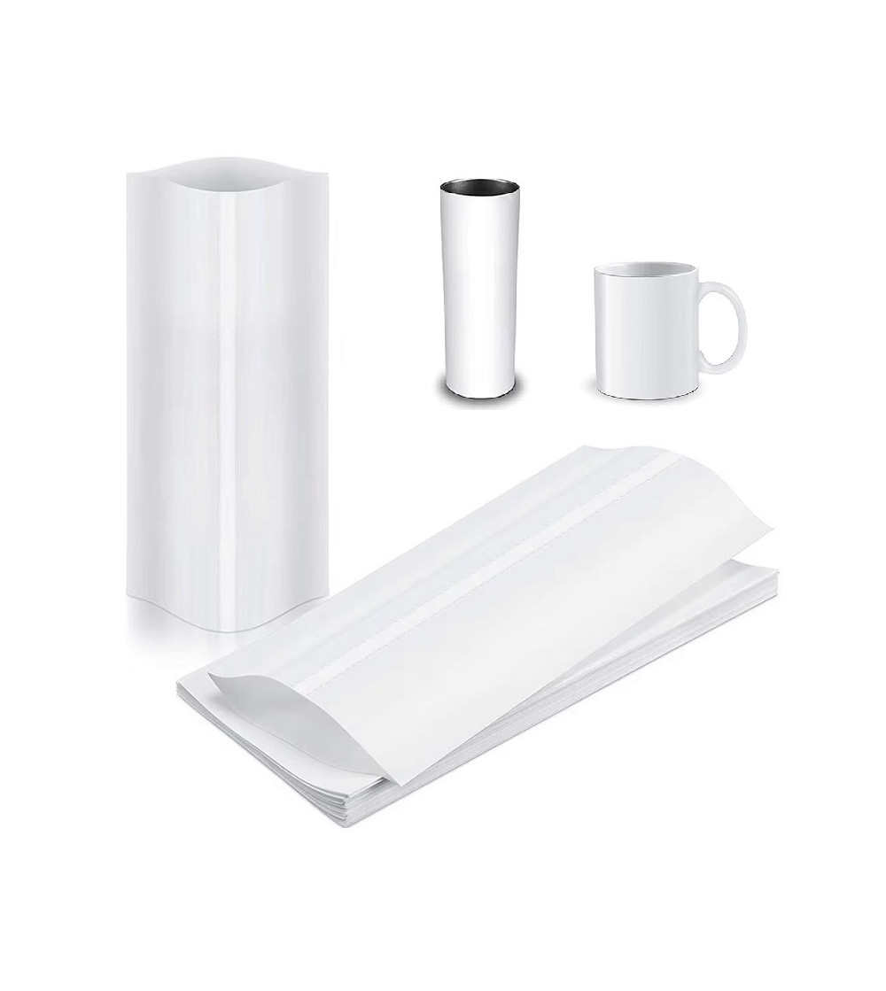 Lot de 10 films thermorétractables pour sublimation sur mugs, tumblers et tasses. Assure une pression homogène lors du transfert thermique pour une impression nette et professionnelle.