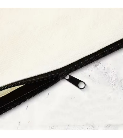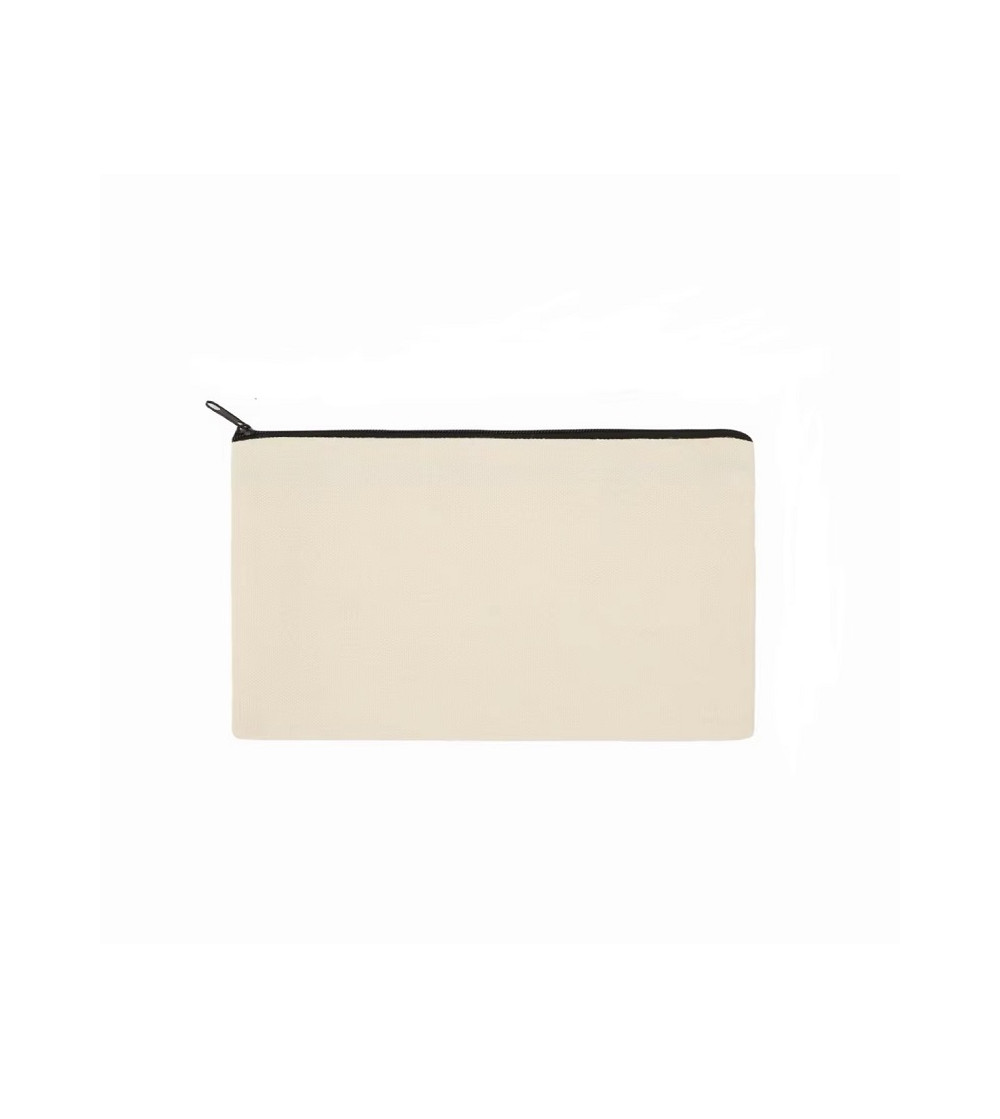 Trousse beige en polyester spécial sublimation avec fermeture éclair noire. Idéale pour une personnalisation nette et durable. Parfaite pour cadeaux personnalisés, papeterie et objets promotionnels.