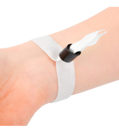 Le fermoir noir apporte un contraste moderne avec le bracelet blanc tout en assurant un bon maintien au poignet. Pratique, fiable et résistant, il est adapté à une utilisation événementielle ou promotionnelle.