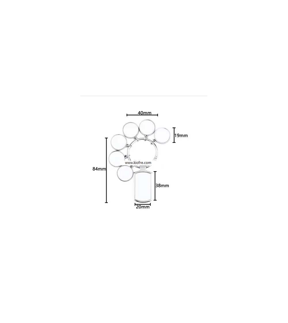 Le porte-clés multiple 7 breloques pour sublimation est parfait pour les créations personnalisées. Chaque breloque peut être sublimée avec des logos, photos, textes ou motifs, permettant de réaliser un objet unique et attrayant.