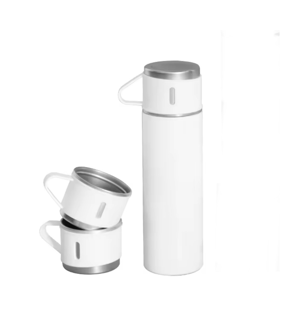 Thermos sublimation 500 ml avec 3 tasses – Personnalisable en acier inoxydable