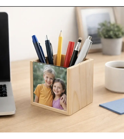 Pot en bois MDF, idéal pour la sublimation. Parfait pour organiser un bureau tout en ajoutant une touche personnalisée et décorative.