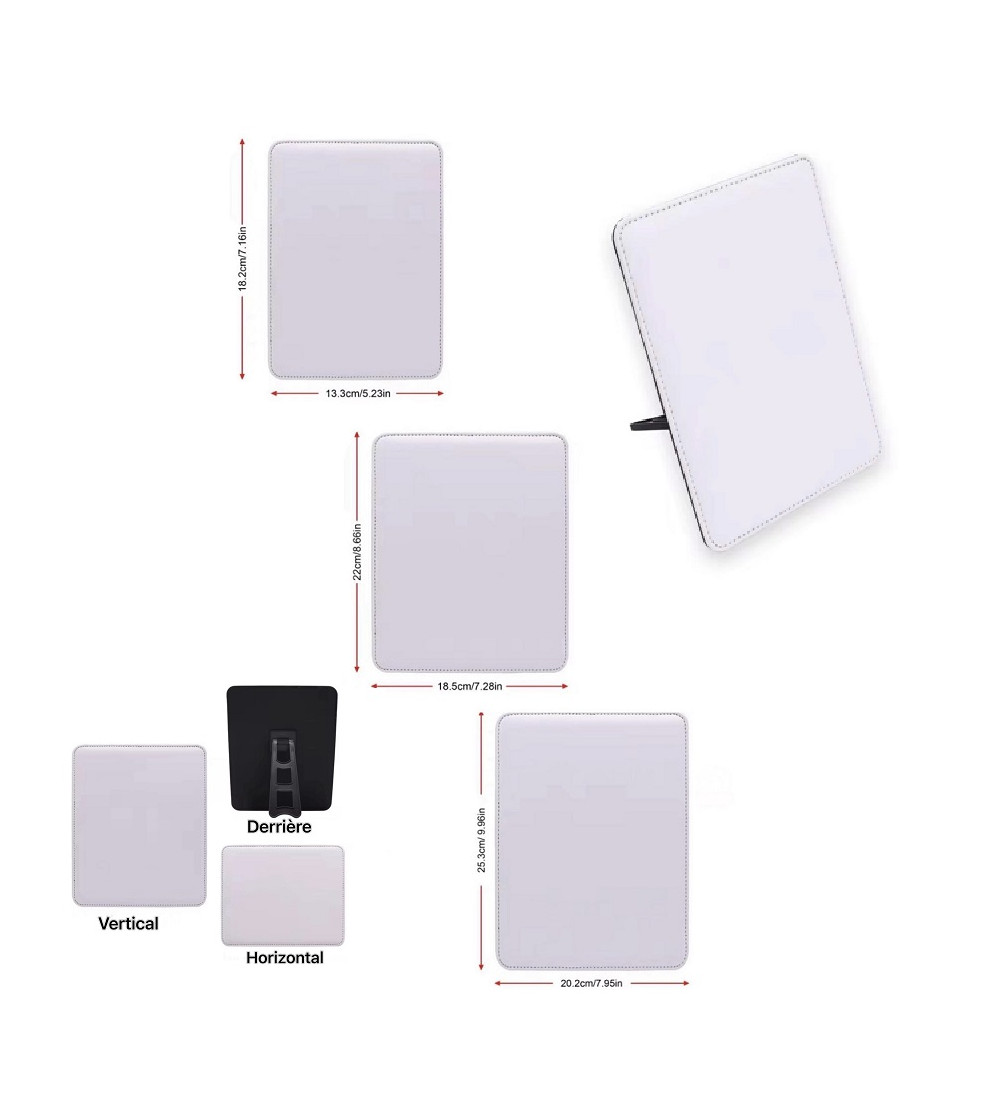 Cadre similicuir pour sublimation, disponible en plusieurs dimensions. Support photo personnalisable sublimable ou à décorer selon vos envies. Livré avec support arrière à coller et utilisable en orientation verticale ou horizontale.
