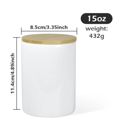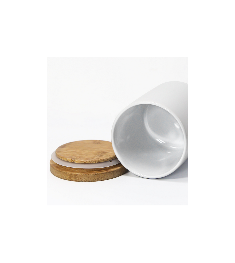 Pot à Biscuit Céramique 15 oz (450ml) avec Couvercle en Bambou – Spécial Sublimation
