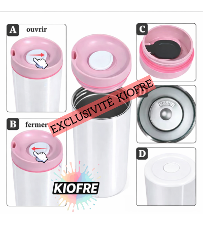 Proposée en exclusivité chez Kiofre, cette gourde se distingue par son bouchon avec bouton coulissant, pratique pour l’utilisation quotidienne et assurant une bonne étanchéité.