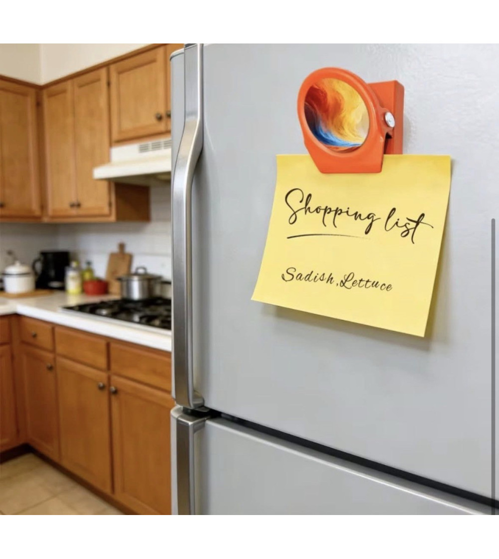 Elle maintient facilement feuilles, photos ou listes de courses.