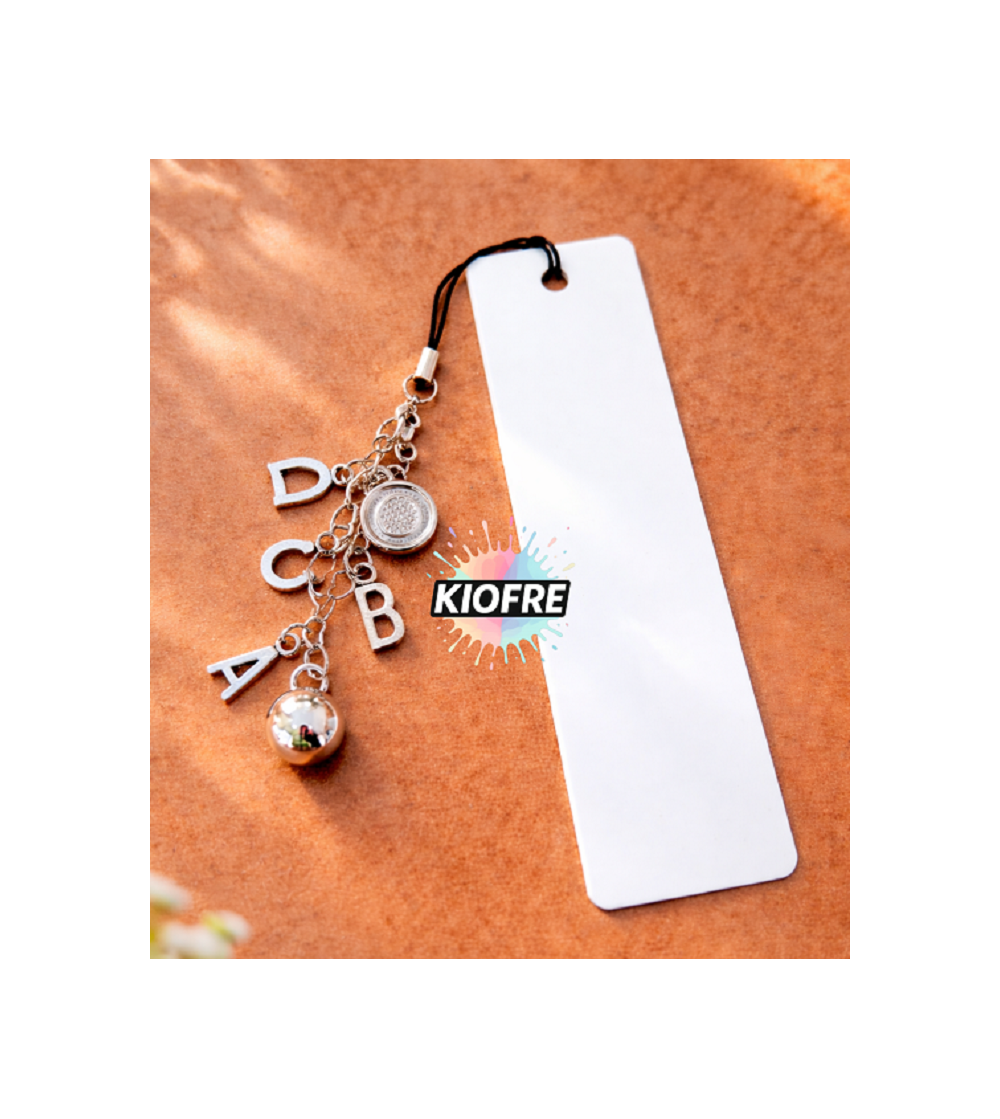 Créez des marque-pages personnalisés élégants avec ce modèle en aluminium sublimable, équipé de breloques lettres pour une touche unique et originale.