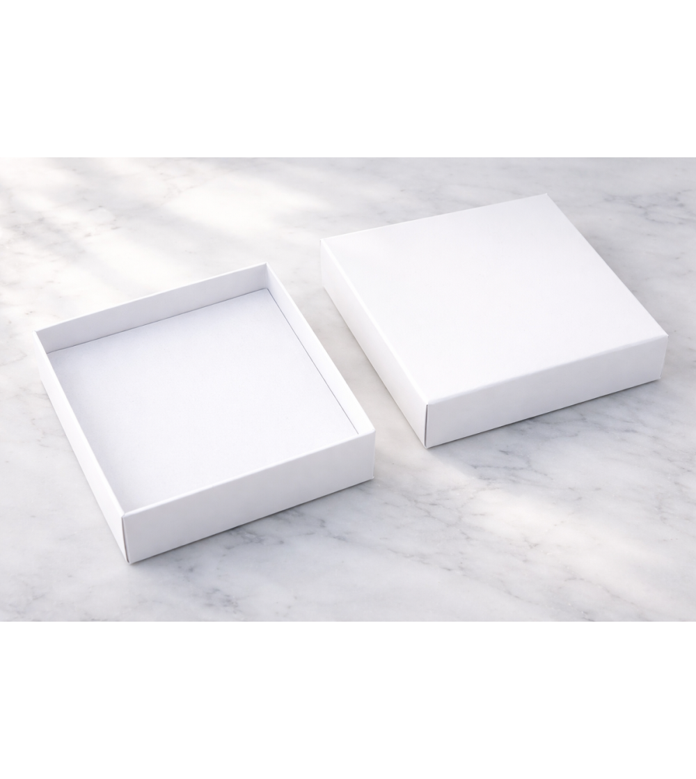 Boîte à bijoux carrée blanche élégante, idéale pour ranger et protéger vos bijoux au quotidien. Compacte et pratique, elle convient parfaitement pour bagues, boucles d’oreilles et petits accessoires.