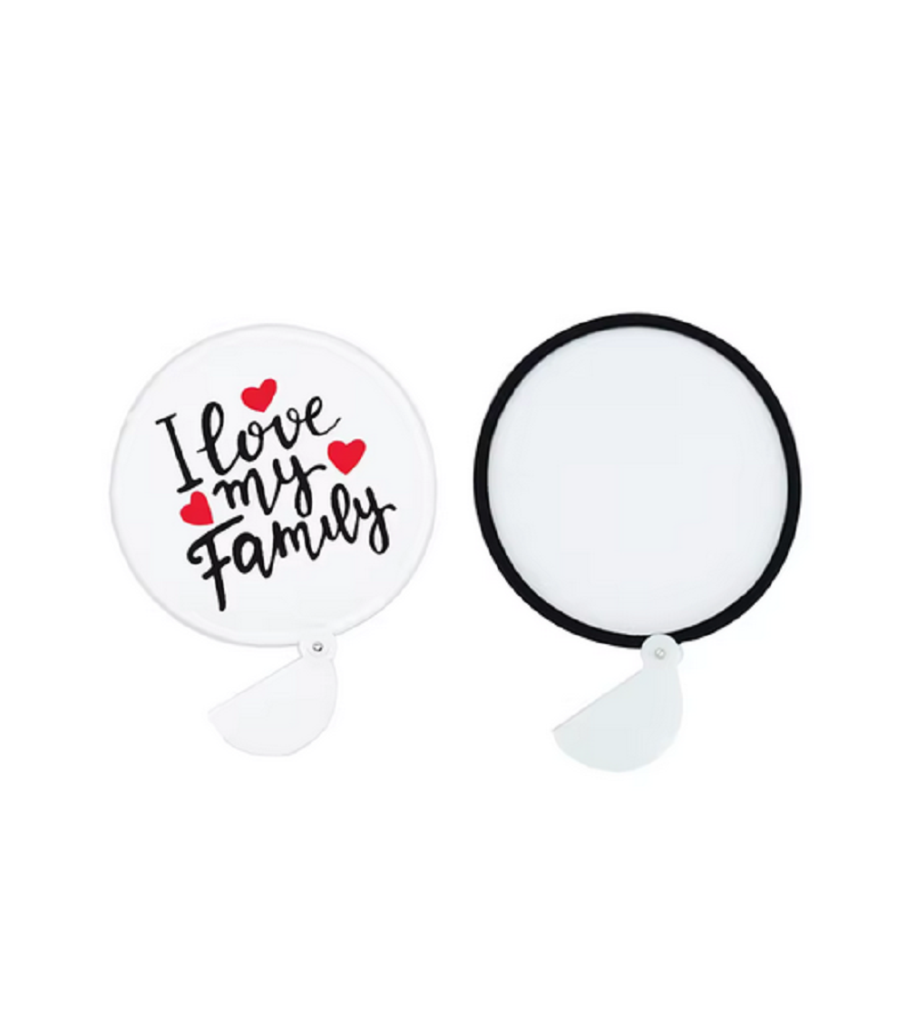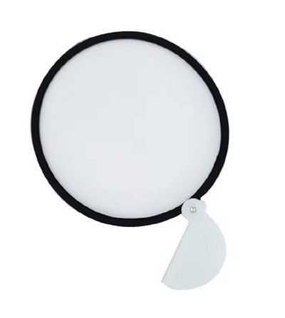 Cet éventail rond pliable est spécialement conçu pour la sublimation. Sa surface en tissu blanc permet une impression nette, colorée et durable, idéale pour créer des visuels personnalisés : logos, photos, illustrations ou messages.