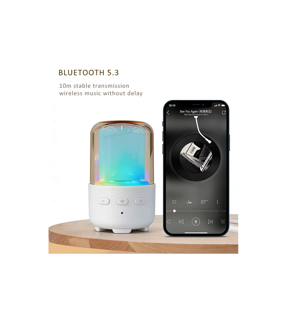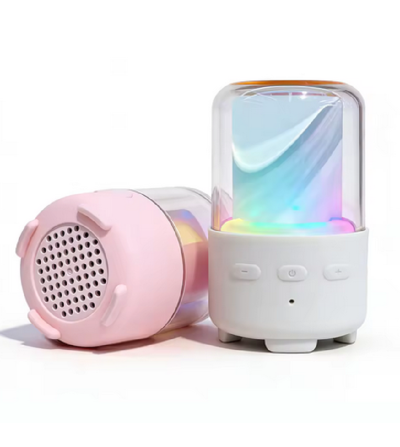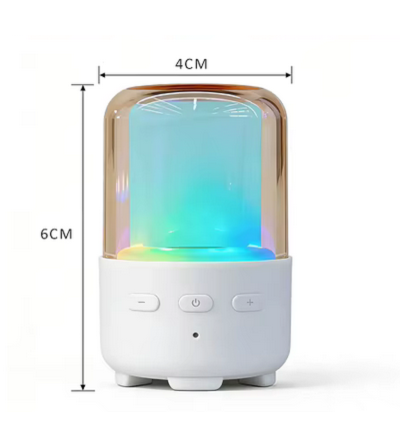 Mini Enceinte Bluetooth compacte 4x6 cm personnalisable par sublimation. LED multicolore, connexion Bluetooth et lecture via carte micro SD (non fournie).