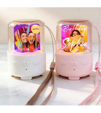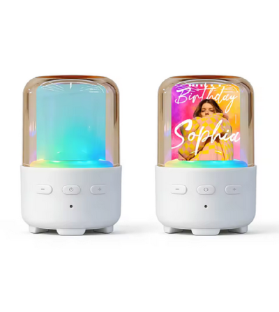 Mini enceinte Bluetooth LED pour sublimation 4x6 cm – Haut-parleur personnalisable avec lumière multicolore